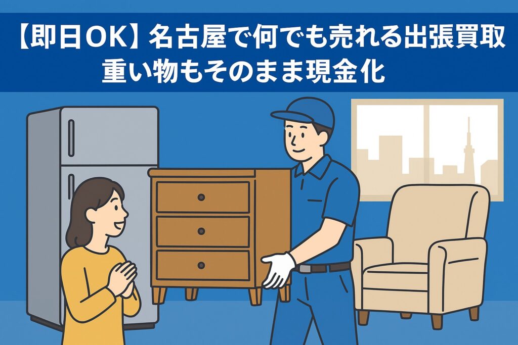 この記事では、「名古屋で何でも売れる即日出張買取」がどんなサービスなのかを、他の買取方法との違い・即日対応が頼りになる具体的なシーン・高く売るためのポイントなどと合わせて分かりやすく解説します。これまでの「押入れ整理」や「不用品全体」ではなく、今回は“重い物・大きい物・今すぐ片付けたい物”に焦点を当てた内容でご紹介していきます。