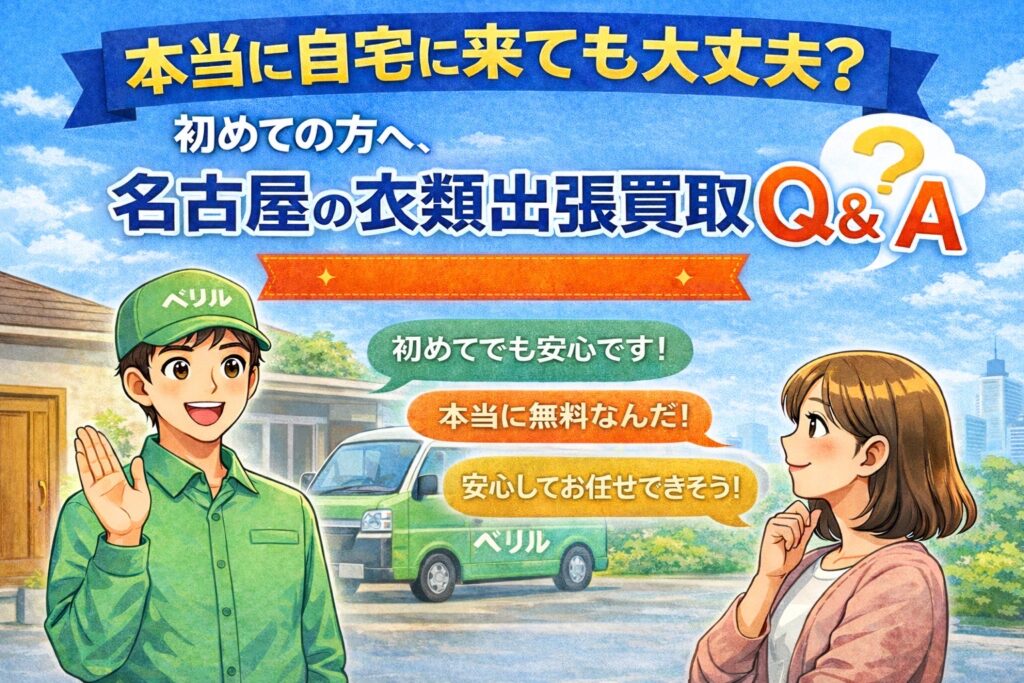 この記事では、初めて名古屋で衣類の出張買取を利用する方に向けて、よくある不安や疑問をQ&A形式で分かりやすく解説します。 「どんな人が来るの?」「断っても大丈夫?」「本当に無料?」といった気になるポイントを一つずつ解消していきます。