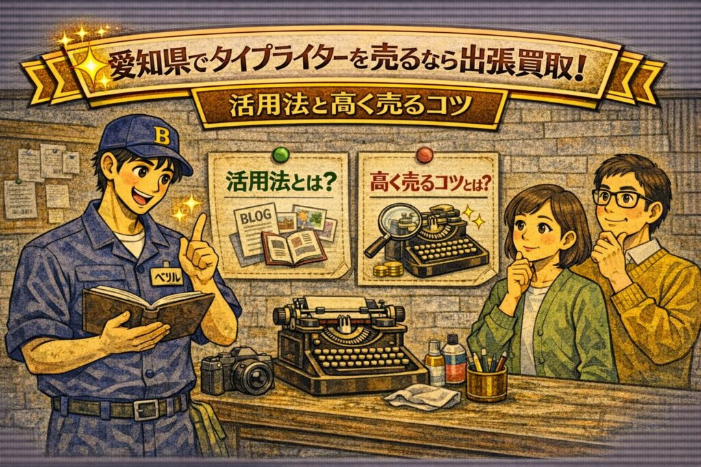 この記事では、愛知県でタイプライターを売るときに「出張買取がなぜおすすめなのか」「どう使えばスムーズなのか」「高く売るコツは何か」を、初めての方にも分かるようにまとめました。最後まで読めば、“一点だけでも損しない売り方”が具体的にイメージできるはずです。