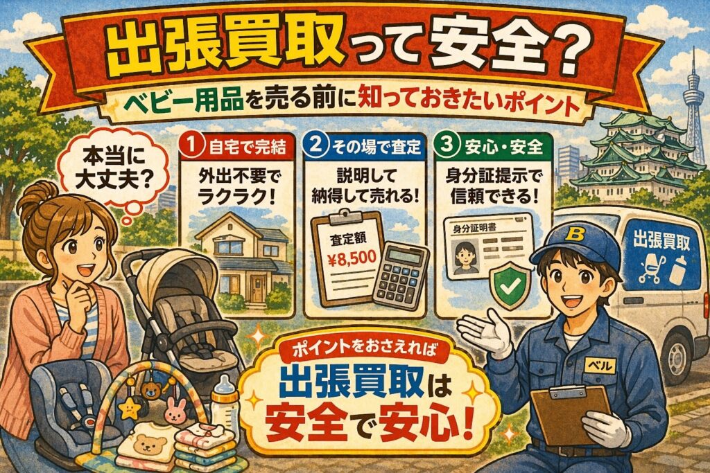 この記事では、「出張買取って安全?ベビー用品を売る前に知っておきたいポイント」というテーマで、出張買取に不安を感じやすい理由、安心して利用しやすい業者の見方、依頼前に確認したいこと、当日に気をつけたいポイント、どんなご家庭に向いているかまでを順番に分かりやすく整理していきます。ベビー用品を手放したいけれど、出張買取の安全性が気になって動けずにいる方は、ぜひ参考にしてみてください。