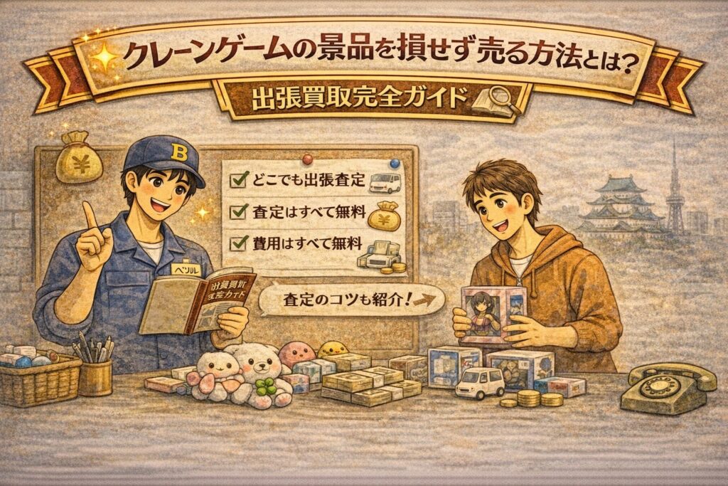 この記事では、名古屋でクレーンゲーム景品を売るときに「損」になりやすいポイントを整理し、損しない判断軸・出張買取の使い方・10分準備・注意点・よくある質問まで、完全ガイドとしてまとめます。「まず何からすればいい?」が分かる構成にしているので、読み終わった頃には“動ける状態”になっているはずです。