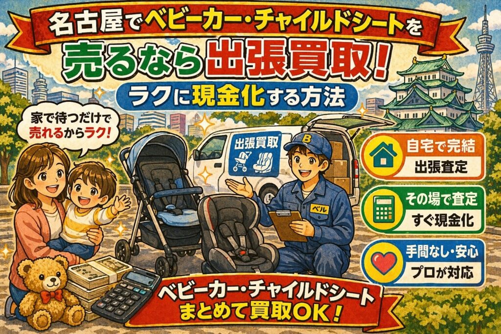 この記事では、「名古屋でベビーカー・チャイルドシートを売るなら出張買取!ラクに現金化する方法」というテーマで、まずはベビーカーやチャイルドシートが売れる理由を整理しながら、どんな売り方があるのか、なぜ出張買取が大型育児用品と相性がよいのか、少しでも納得して現金化するための準備やコツ、依頼前に確認しておきたいポイントまでを順番に分かりやすく整理していきます。名古屋で使わなくなったベビーカーやチャイルドシートを、できるだけ負担を減らしながらスッキリ手放したい方は、ぜひ参考にしてみてください。