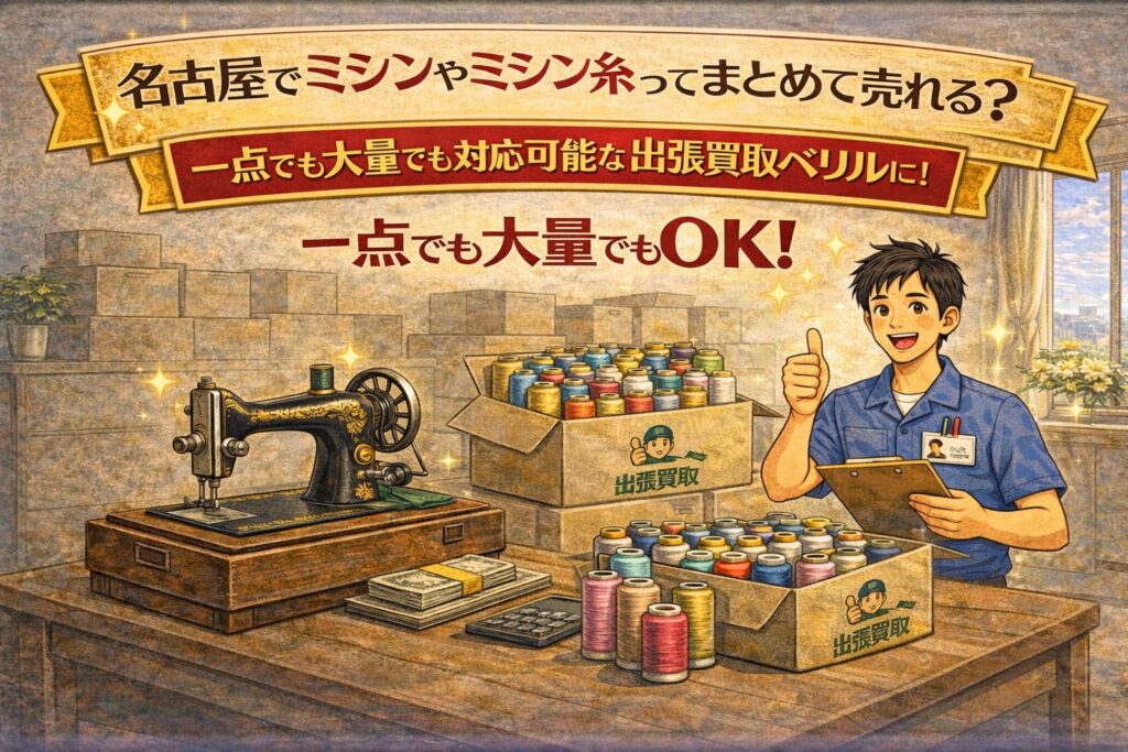 この記事では、名古屋でミシンやミシン糸を“まとめて売れるのか”という疑問に答えつつ、一点でも大量でも査定できるベリルの便利さ、相談しやすい出し方、当日までにやっておくとスムーズな準備、注意点までを分かりやすくまとめます。