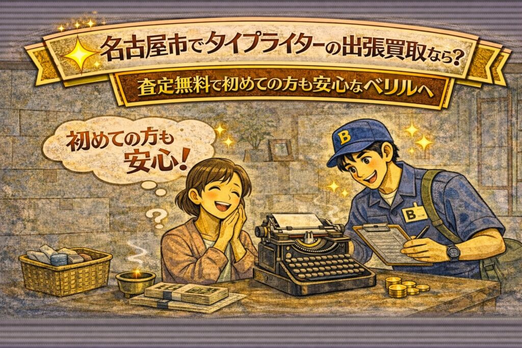 この記事では、初めての方がつまずきやすいポイントを整理しつつ、名古屋市でタイプライターを出張買取に出すときの流れ、損しない準備、トラブル回避の確認項目までをまとめて解説します。「まずは査定だけでも…」という段階でも読みやすいように、できるだけ具体的に書いていきます。