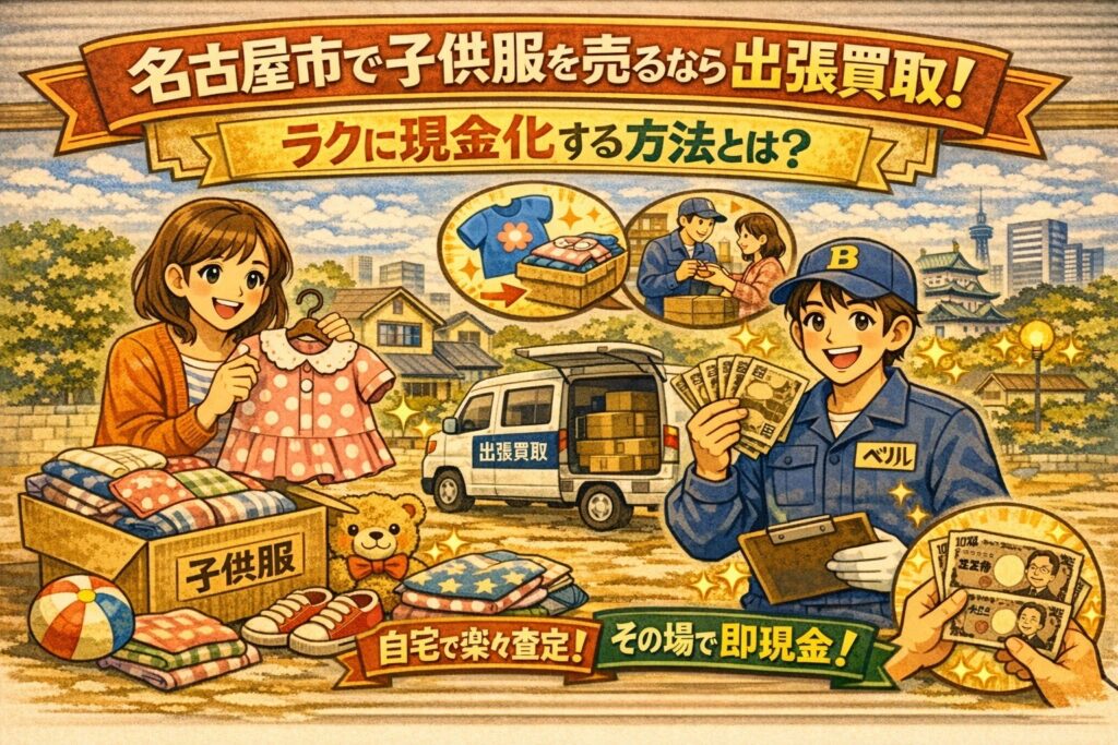 この記事では、名古屋市で子供服をラクに現金化したい方に向けて、出張買取が向いている理由、フリマや店頭との違い、査定が進みやすい出し方、依頼前に知っておきたい注意点まで、分かりやすく整理していきます。子供服整理は「頑張る」よりも、止まらない仕組みを使う方がうまくいきやすいです。捨てる前に、まずは価値確認から一歩進めてみましょう。