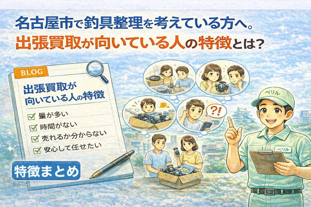 この記事では、名古屋市で釣具整理をしたい方に向けて、出張買取が向いている人の特徴を分かりやすく整理します。「こんな人は出張がラク」「こういう場合は他の方法も検討」といった判断軸を、具体例とチェックリスト形式で紹介しながら、後悔しない釣具整理の進め方を解説します。読み終わるころには、あなたがどの売り方を選ぶべきかがスッキリ整理できるはずです。
