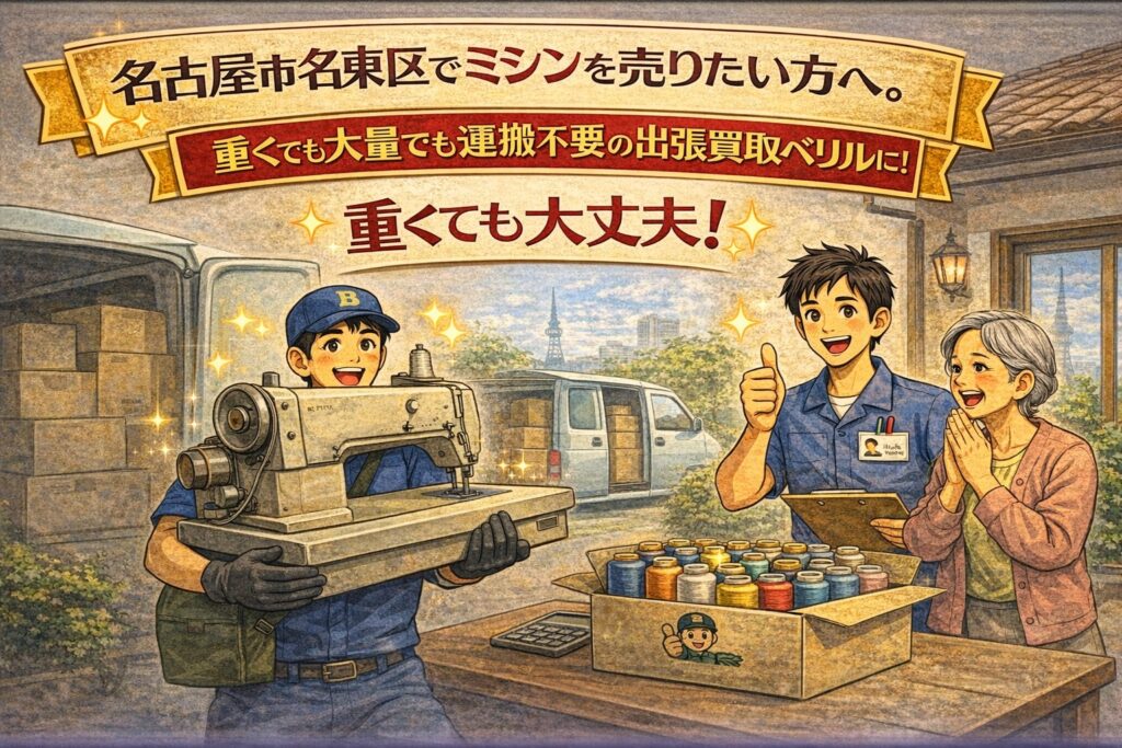 名古屋市名東区でミシンを売ろうと考えたとき、多くの方が最初につまずくのが 「売りたい気持ちはあるのに、実際の行動に移せない」という壁です。 ミシンは小さな家電のように見えて、実際には重さ・大きさ・壊れやすさを兼ね備えた、 非常に扱いづらいアイテム。 そのため、名東区でも「いつか売ろう」「時間ができたら」と思いながら、 何年も保管したままになっているケースが少なくありません。