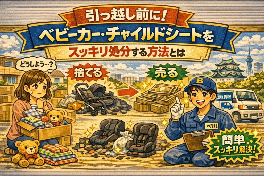 この記事では、「引っ越し前に!ベビーカー・チャイルドシートをスッキリ処分する方法とは」というテーマで、なぜ引っ越し前に大型育児用品の整理が重要なのか、処分・売却・譲渡にはどんな方法があるのか、どんな家庭にどの方法が向いているのか、スムーズに進めるための準備や確認ポイントまでを順番に分かりやすく整理していきます。引っ越し前にベビーカーやチャイルドシートをどうするか迷っている方は、ぜひ参考にしてみてください。