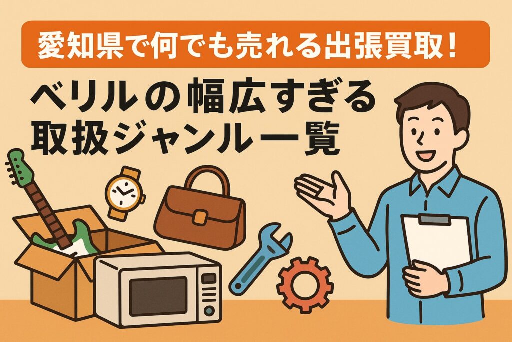 そんな中、愛知県全域で「ジャンルなんでもまとめて見てもらえる」として選ばれているのが、出張買取サービスベリルです。ベリルの最大の特長は、特定ジャンルに偏らず、家庭内にある“ほぼすべてのカテゴリ”を一括で査定対象にできる取扱ジャンルの幅広さにあります。