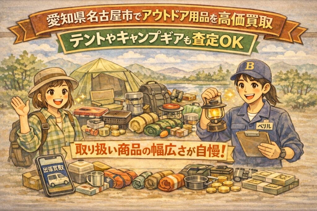 本記事では、愛知県名古屋市でアウトドア用品を「できるだけ高く」「できるだけラクに」手放すために、取り扱い商品の幅広さ(テントやキャンプギアはもちろん、周辺アイテムまで)を軸に、査定で見られやすいポイントや、付属品のまとめ方、売り方の選び方までを分かりやすく整理します。清掃を頑張りすぎるより、価値が伝わる“情報整理+付属品+まとめ方”を押さえるのが近道。まずは相場確認から、納得して整理を進めましょう。