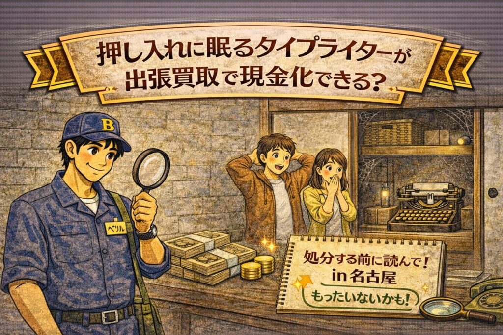 押し入れや物置からタイプライターが出てきたとき、多くの方が最初に思うのは「古いし、もう価値はないでしょ…」という不安です。特に名古屋市のようにマンションや戸建てで収納がしっかりある地域だと、「とりあえず取っておいた」「捨てどきが分からず押し入れの奥に戻した」が何年も続きがち。けれど実は、タイプライターは“価値がゼロだと思われやすいのに、実際は査定対象になりやすい”ジャンルのひとつです。