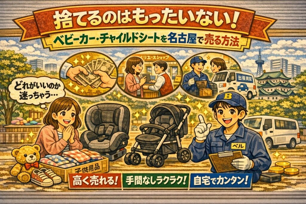 この記事では、「捨てるのはもったいない!ベビーカー・チャイルドシートを名古屋で売る方法」というテーマで、なぜこの2つが処分しにくいのか、売る前に知っておきたい考え方、名古屋で選びやすい売却方法の違い、少しでも納得して手放すための準備やコツ、そしてどんな家庭にどの方法が向いているのかまで、順番に分かりやすく整理していきます。名古屋でベビーカーやチャイルドシートを「ただ処分するのではなく、できれば納得感を持って手放したい」と考えている方は、ぜひ参考にしてみてください。