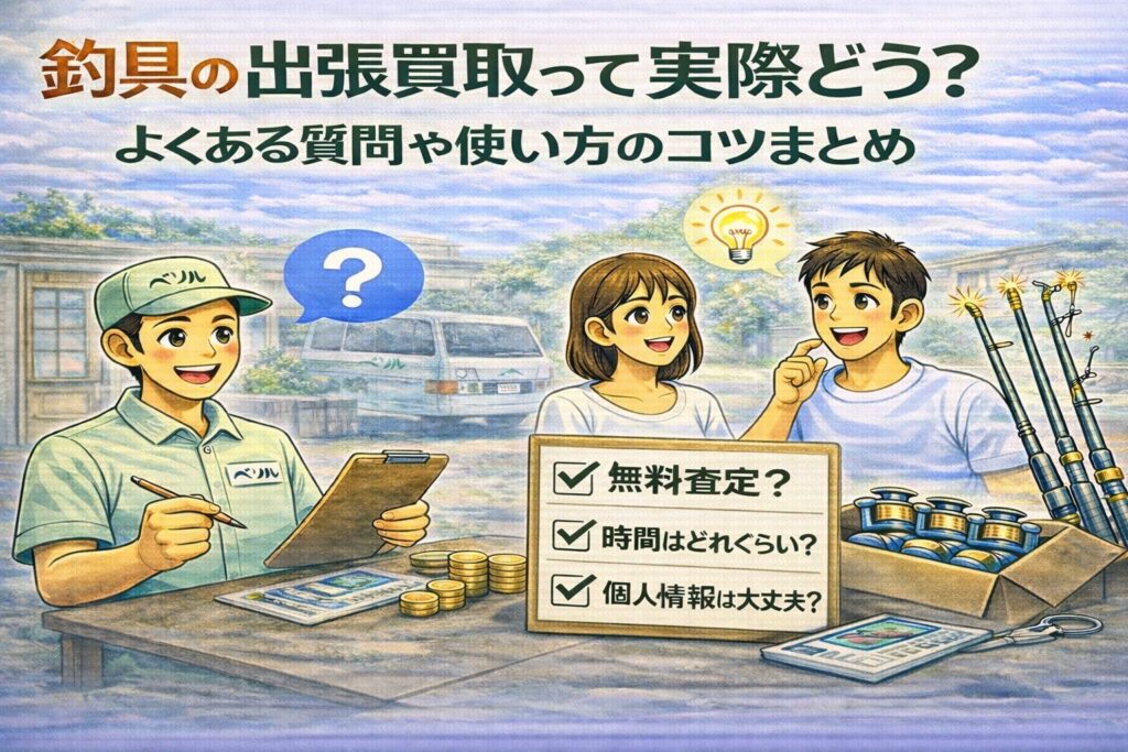 この記事では、釣具の出張買取が気になる方に向けて、 実際のメリット・注意点・よくある質問をまとめつつ、 損をしないための“使い方のコツ”を分かりやすく整理します。