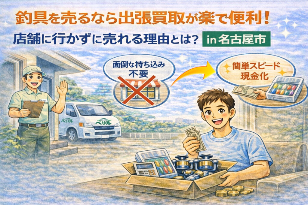この記事では、「釣具を売るなら出張買取が楽で便利!」と言える理由を、名古屋市の暮らし目線で分かりやすく解説します。加えて、名古屋市に特化した出張買取サービスベリルが、なぜ“初めてでも使いやすい”のかも具体的に紹介。査定・出張・キャンセルがすべて無料で、当日は到着前に電話で到着時間をお知らせするなど、安心して利用しやすいポイントも押さえながら、失敗しない進め方までまとめます。「店舗に行くのが面倒」「釣具が多くて整理が進まない」「フリマは手間が多い」と感じている方は、ぜひ参考にしてください。