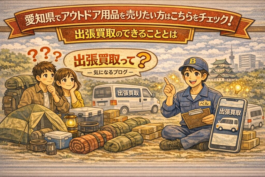 「アウトドア用品を売りたいけど、結局そのまま…」——愛知県でもこの悩みはとても多いです。テントやタープ、テーブル・チェア、寝袋やマット、クーラーボックスや収納コンテナなど、アウトドア用品は大きい・重い・付属品が多いのが当たり前。だからこそ、売りたい気持ちはあっても、いざ動こうとすると「車に積めない」「搬入出が面倒」「欠品が怖い」「汚れや使用感が気になる」と、ひとつの不安で手が止まりがちです。