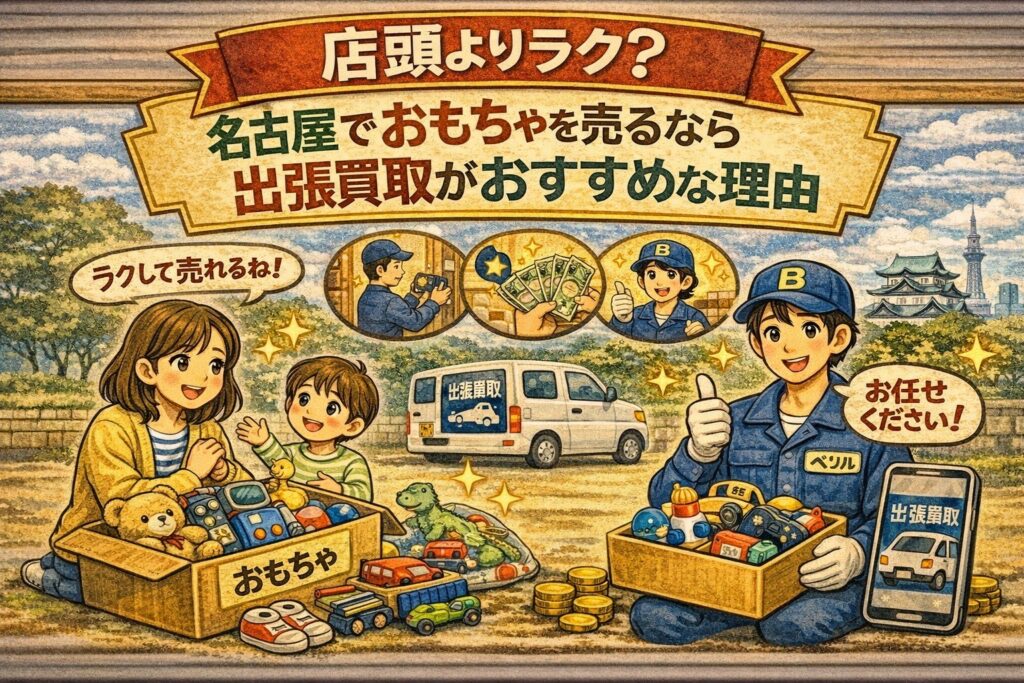 この記事では、「店頭よりラク?名古屋でおもちゃを売るなら出張買取がおすすめな理由」というテーマで、店頭買取と出張買取の違いをふまえながら、なぜ出張買取がおもちゃ整理と相性がよいのか、どんな家庭に向いているのか、より納得しやすく整理するためのコツ、などをわかりやすく整理していきます。名古屋で使わなくなったおもちゃを、できるだけラクに、そして無理なく整理したい方は、ぜひ参考にしてみてください。