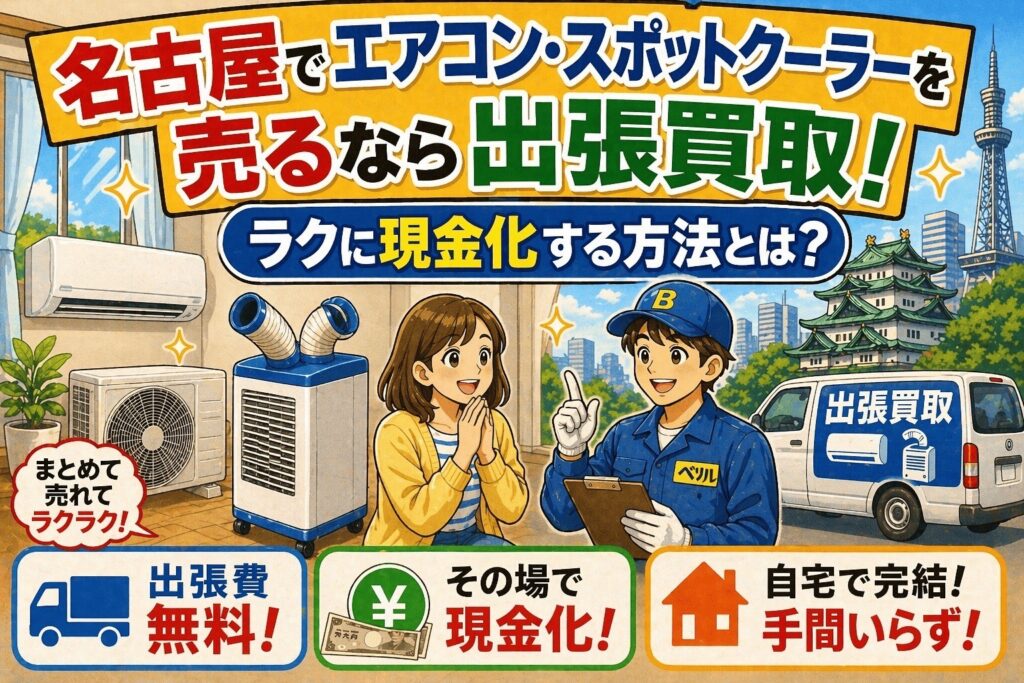 この記事では、「名古屋でエアコン・スポットクーラーを売るなら出張買取!ラクに現金化する方法とは?」というテーマで、冷房家電が売れる理由、売り方ごとの違い、出張買取が使いやすいポイント、現金化しやすくするための準備、依頼前に確認したい注意点までを分かりやすく整理していきます。名古屋で使わなくなったエアコンやスポットクーラーを、無理なく手放したい方はぜひ参考にしてみてください。